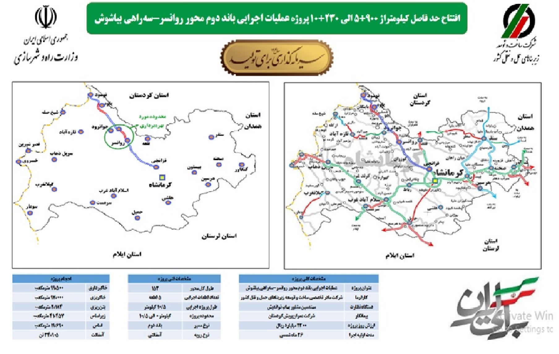 بخشی از پروژه روانسر-سه راهی بیاشوش به طول 5 کیلومتر با اعتباری بالع بر 510 میلیارد ریال و ارزش روز 2300 میلیارد ریال در تاریخ